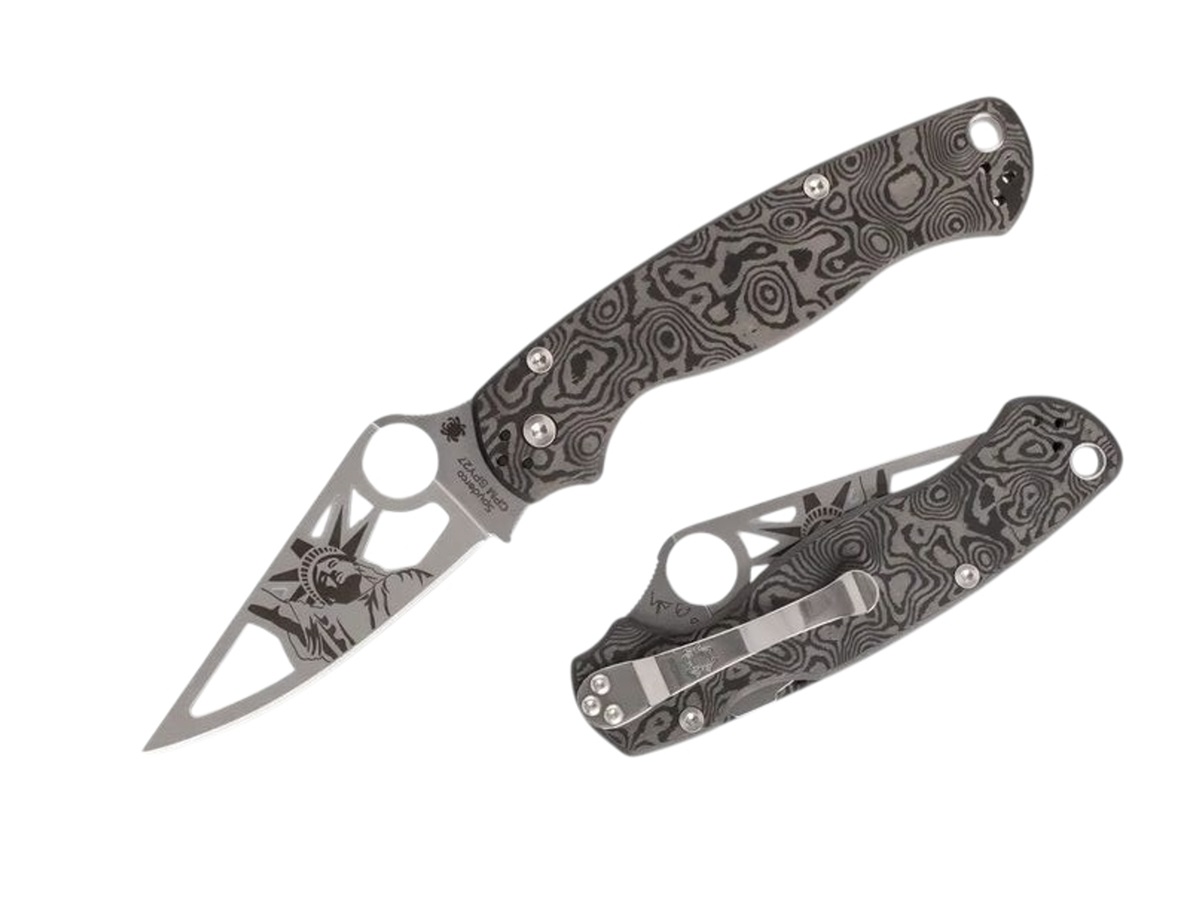 C81CFSPY27P2 | Spyderco Plain Edge CPM-SPY27 Laser-Cut Statue of Liberty Blade Black Dunes Fatcarbon Paramilitary 2 ★ Limited Edition |